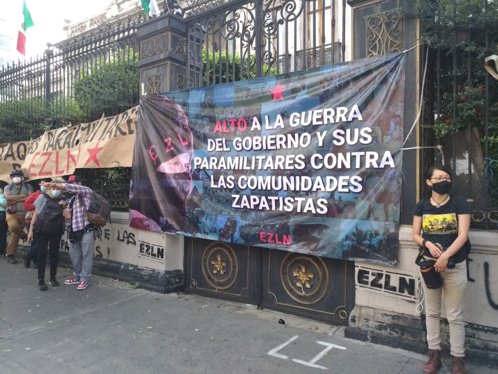 Alrededor de 2 mil personas se manifestaron este viernes frente a las instalaciones de la Secretaría de Gobernación (Segob) para exigir un alto a la “guerra paramilitar” desatada en Chiapas –según denunció el Ejército Zapatista de Liberación Nacional (EZLN)– por Rutilio Escandón, gobernador de la entidad.