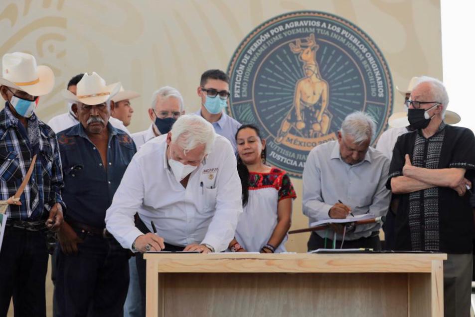 Con la firma de los acuerdos del Plan de Justicia del Pueblo Yaqui, el Estado mexicano se comprometió con esa comunidad indígena y también le pidió perdón al pueblo Yaqui por la persecución, guerra, exterminio y deportación cometidos en su contra.