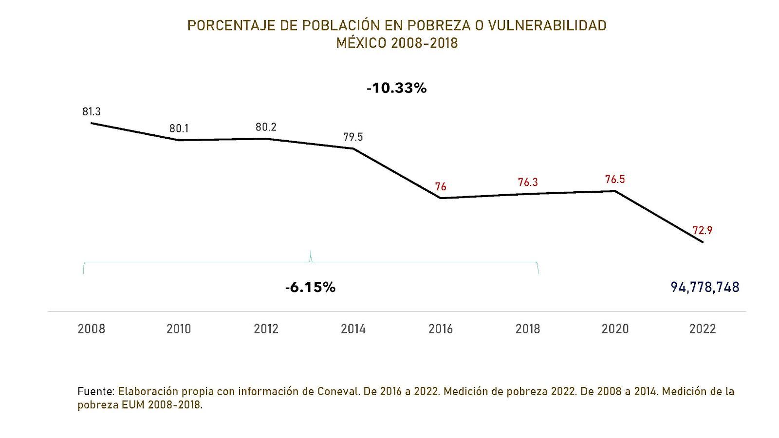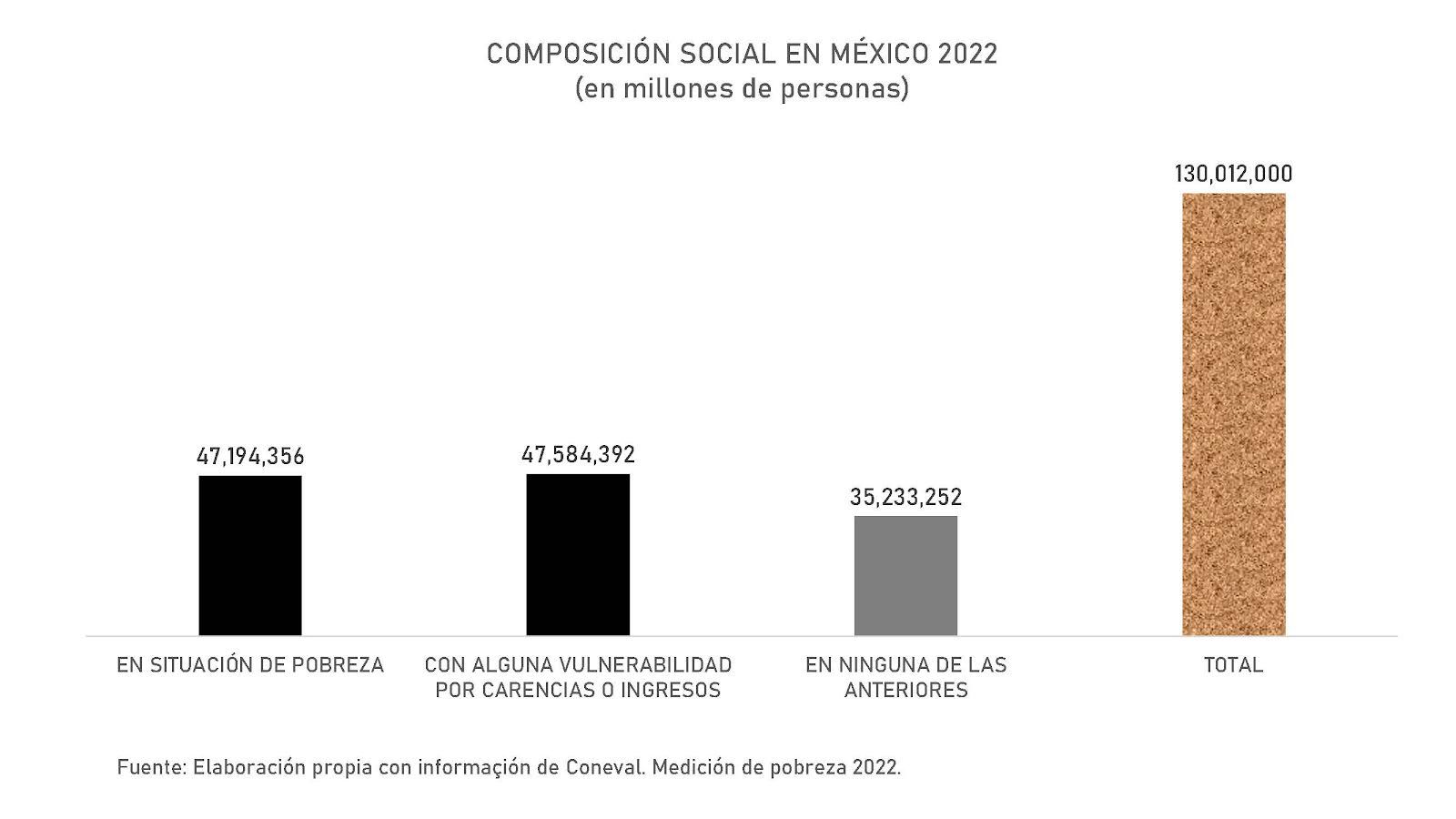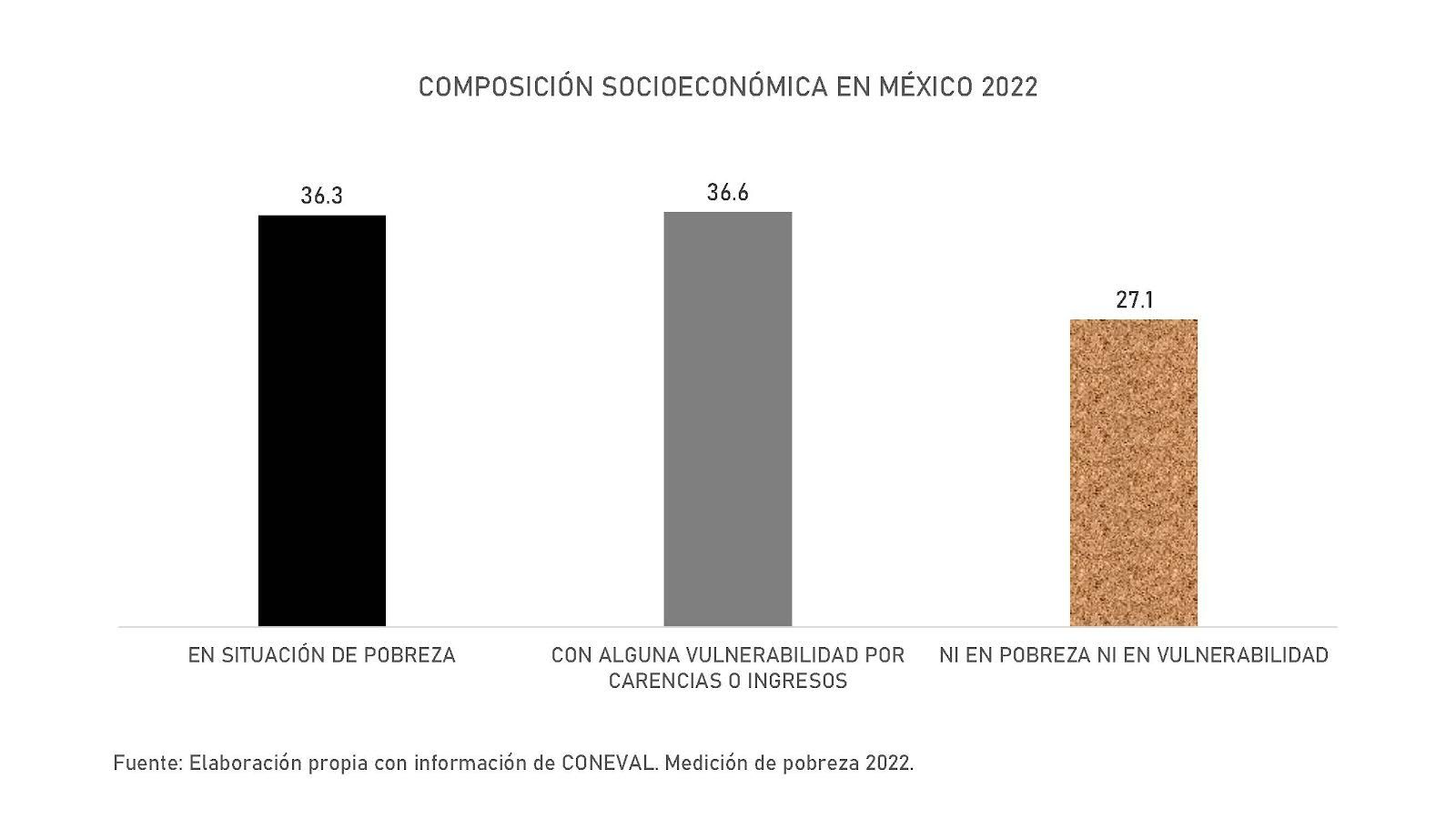 Por otra parte, sostiene que sólo el 27.1 por ciento de la población está bien. Esto es que hay una enorme disparidad: hay 47.1 millones de personas en situación de pobreza que tienen problemas en este país y 35 millones que ni son pobres ni vulnerables, ni carentes.