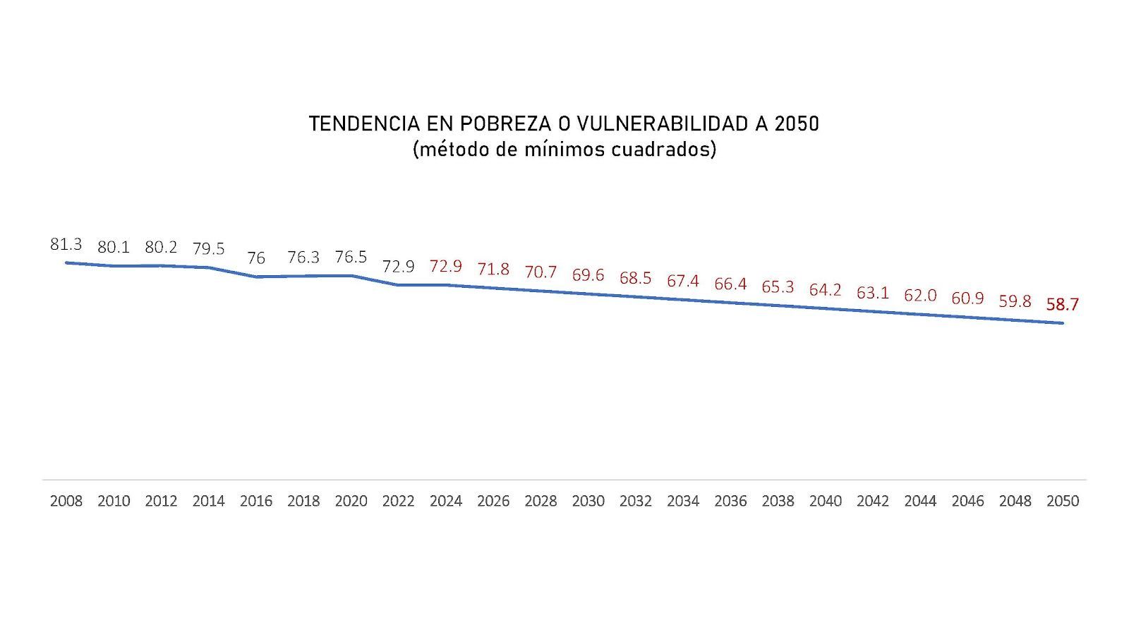 “Hoy la población en situación de pobreza, pobreza extrema, y pobreza con alguna vulnerabilidad es de 36.3, 36.6 y 36.6 millones, respectivamente, es más o menos una suerte de tercios imperfectos”, afirma el experto.