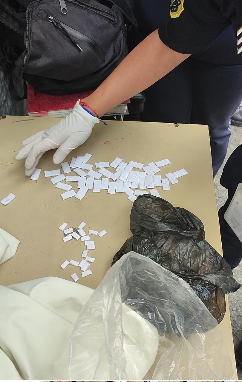 Una vez que empezaron la inspección, los agentes revisaron la bolsa y encontraron alrededor de 50 envoltorios con las características similares a cocaína, dos bolsas con aparente marihuana y 2 mil 57 pesos.