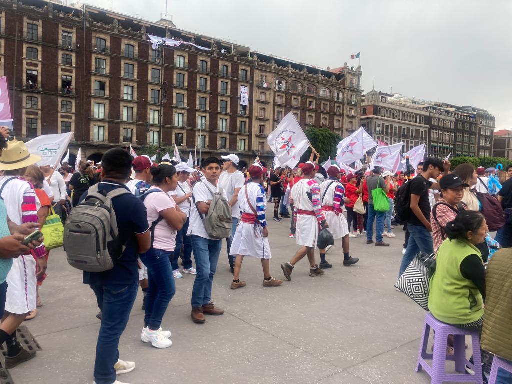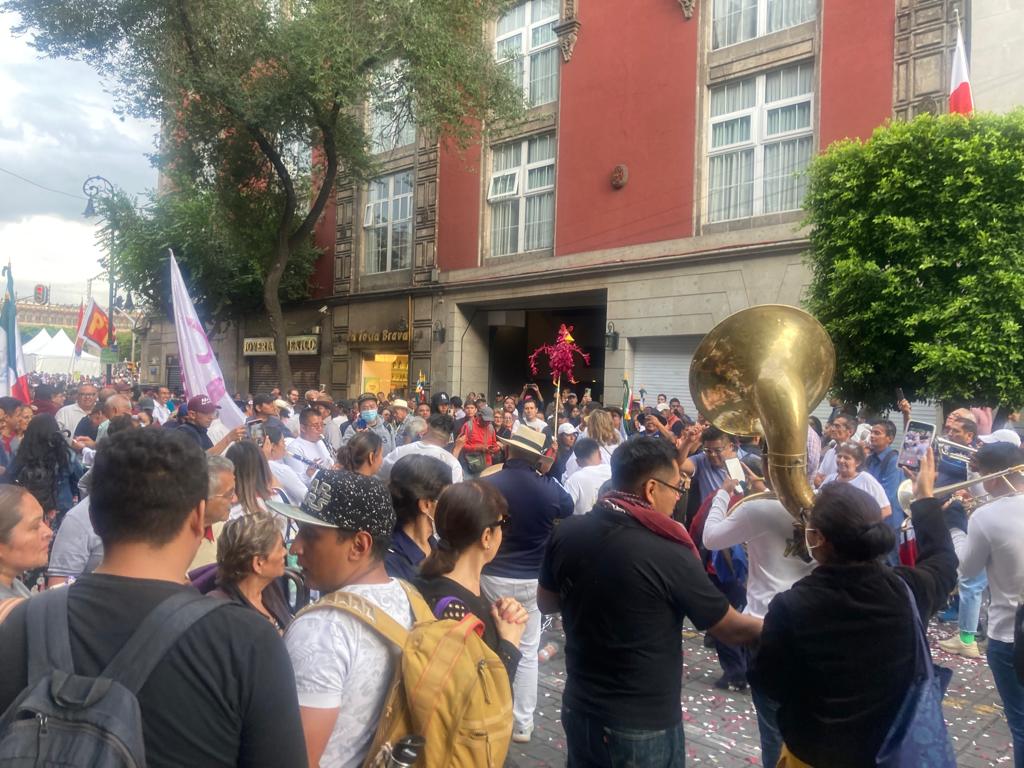 El júbilo desbordante, abriéndose paso por cada camino que desemboca en el Zócalo capitalino. Tamboras, guitarras, batucada acompañaban a las centenas de mujeres, niños, ancianos y jóvenes que se dieron cita a la invitación que lanzó el presidente de este pueblo vibrante.