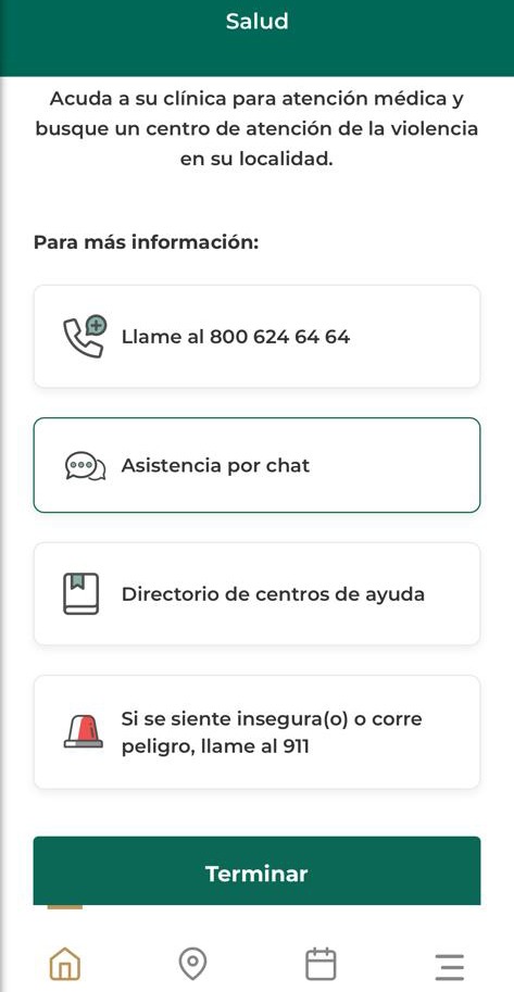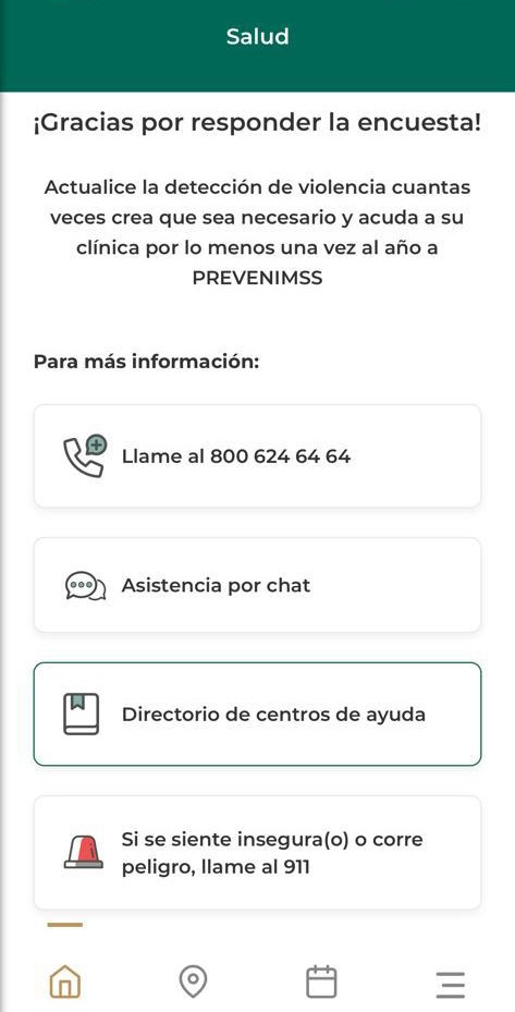 Asimismo, el IMSS explicó que el usuario recibirá posteriormente la invitación a una sala de conversación, un directorio de servicios de atención a la violencia y un botón de marcación directa al 911 para situaciones de urgencia,