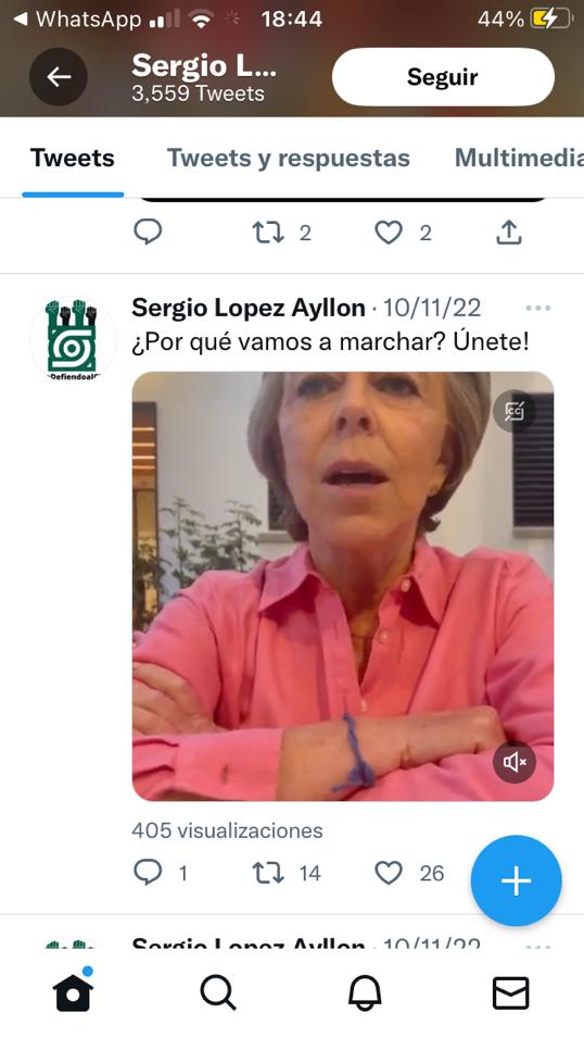 En su cuenta de Twitter @slayllon, López Ayllón publicó el 10 de noviembre pasado el siguiente mensaje: “tu presencia es importante. Los derechos se conquistan, se ejercen y se defienden. Somos ciudadanos. Y queremos vivir en democracia”, con una imagen en la que se lee: “Yo sí voy a la marcha. #YodefiendoalINE, 13 de noviembre, Ángel de la Independencia, 10:30 am. México Unido. Unión de grupos ciudadanos en pro de México”.