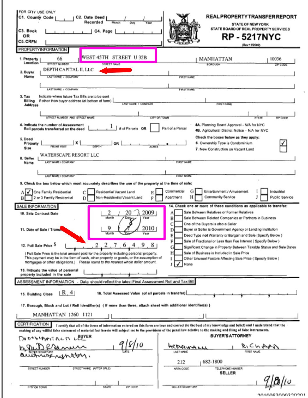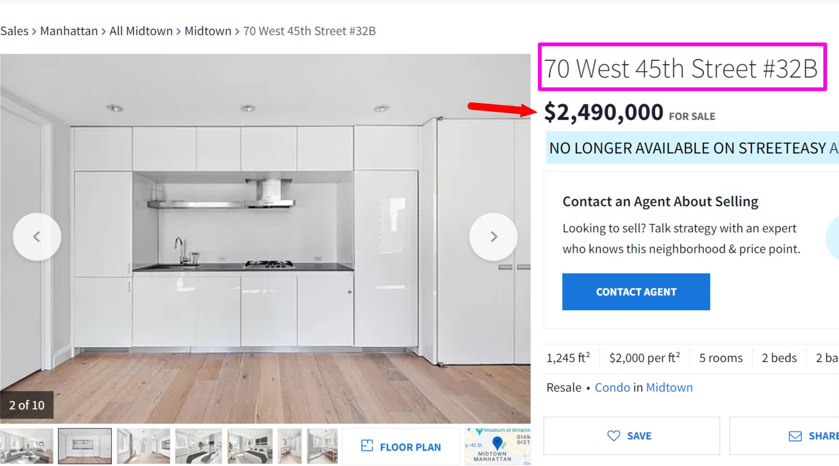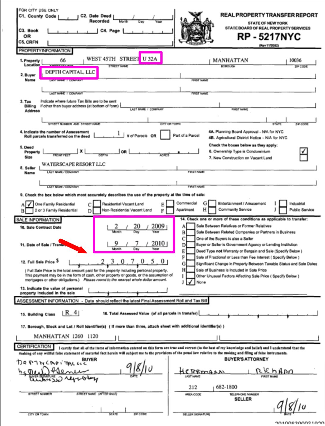 El quinto departamento, también ubicado en Nueva York, está valorado en cerca de 3 millones de dólares y se sitúa de forma adyacente al cuarto departamento. Ambos departamentos juntos ocupan todo un piso dentro del desarrollo inmobiliario denominado Cassa.