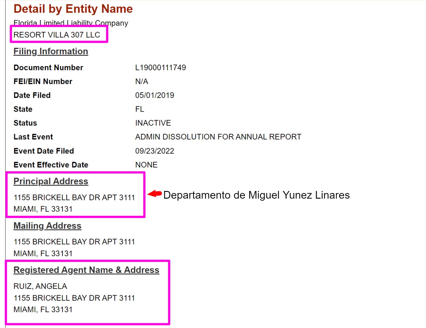 Yunes Linares habría comprado en Estados Unidos una serie de propiedades que revelarían el tamaño de la riqueza que posee. El primer departamento comprado en Miami por el líder del Clan Yunes, cuando aún era priísta, tiene hoy un valor de casi 1 millón de dólares. Este departamento es utilizado para el registro de empresas de dicho clan.
