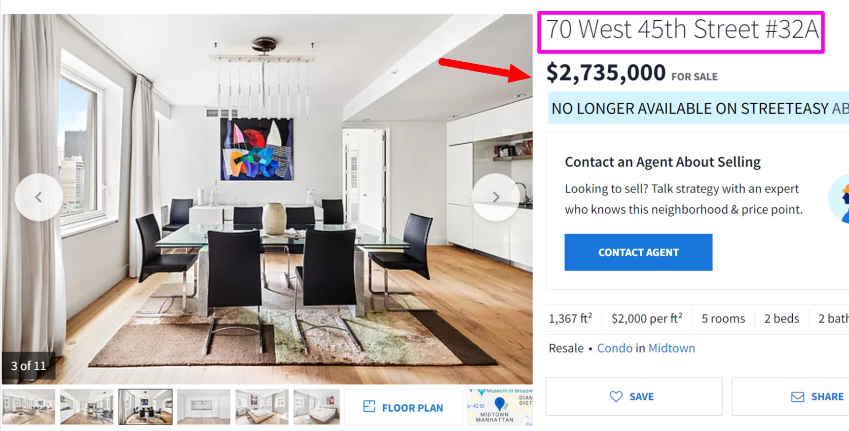 Un cuarto departamento se encuentra en el corazón de Nueva York, a solo unos pasos de la famosa Quinta Avenida. Este tiene un valor de 2.5 millones de dólares y fue comprado seis meses después de que el líder del Clan Yunes dejara la dirección del ISSSTE. La operación se realizó en efectivo.