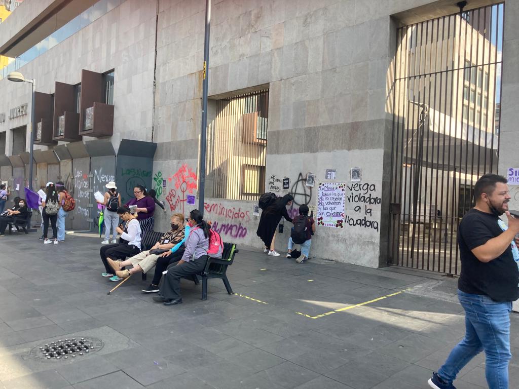 Vestidas de negro, rostros cubiertos con pasamontañas o paliacates morados y verdes, van manifestando la rabia de un género sometido históricamente a la opresión machista. Una tienda de conveniencia ya fue vandalizada; paredes rotas; cortinas de metal abolladas. Golpes.