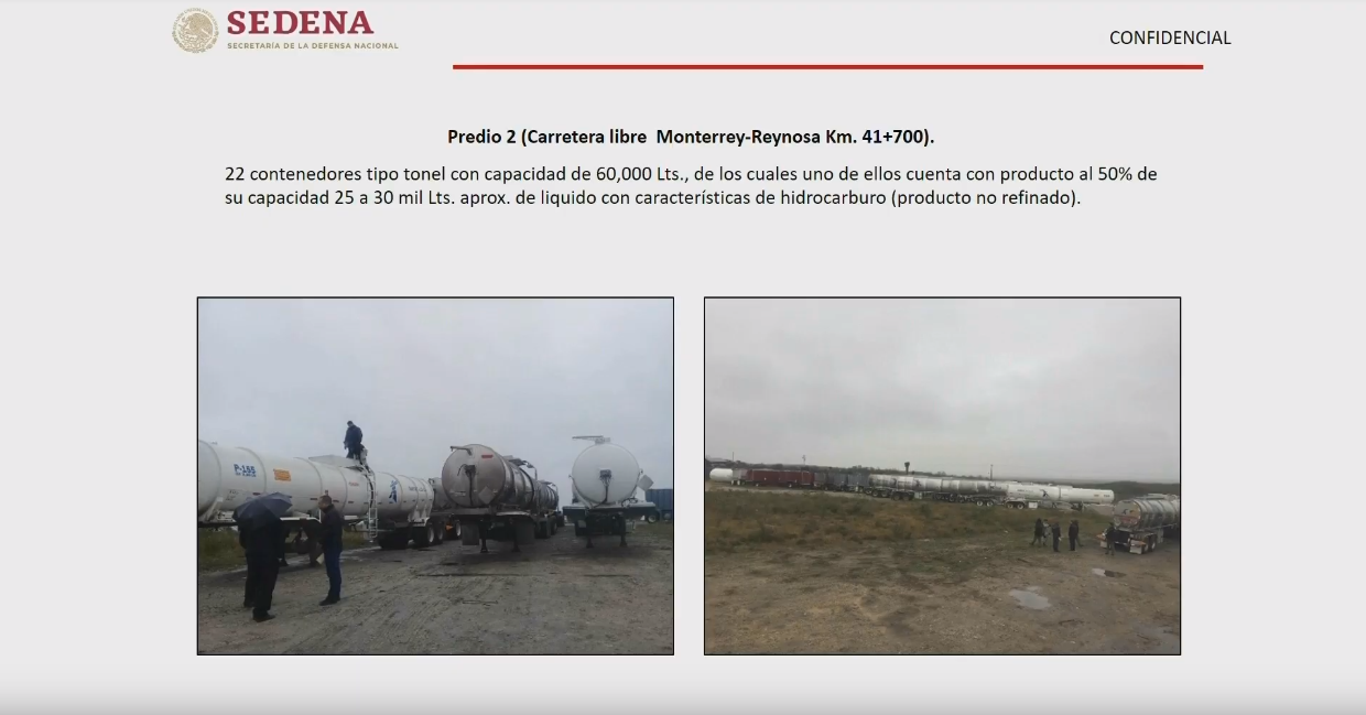 El presidente argumentó que “es el estado democrático de Derecho el que está decidido a enfrentar esta corrupción del robo de hidrocarburos. Es el Estado, no es sólo Pemex, no sólo es la Policía Federal, la Policía Militar, la Policía Naval, es el Estado mexicano, para que se vaya entendiendo. Vamos a seguir desplegando todas las acciones que sean necesarias. No va a haber marcha atrás, ni un paso atrás, ni siquiera para tomar impulso”.