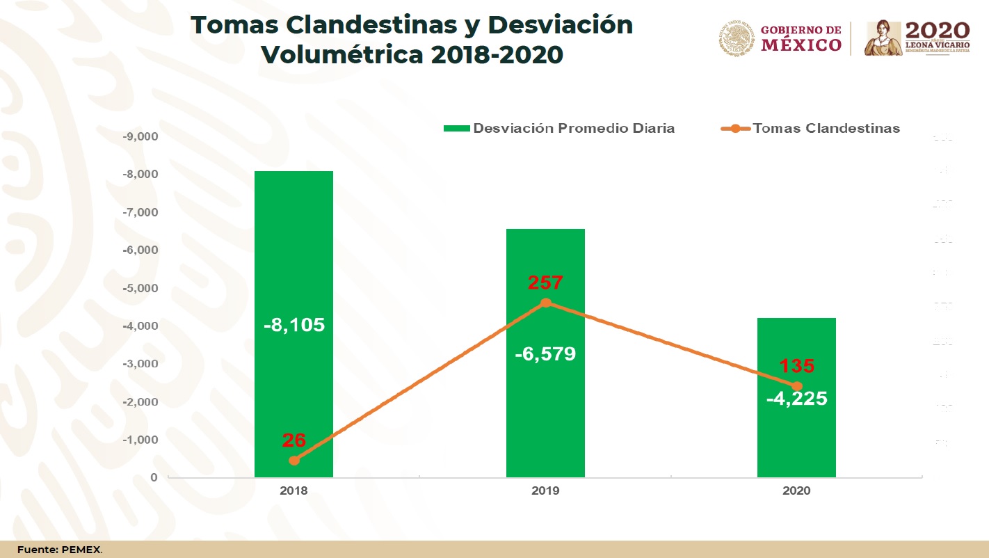 En la conferencia presidencial celebrada en esa entidad, el general secretario explicó que ahí se han asegurado 418 tomas clandestinas en ese mismo periodo.