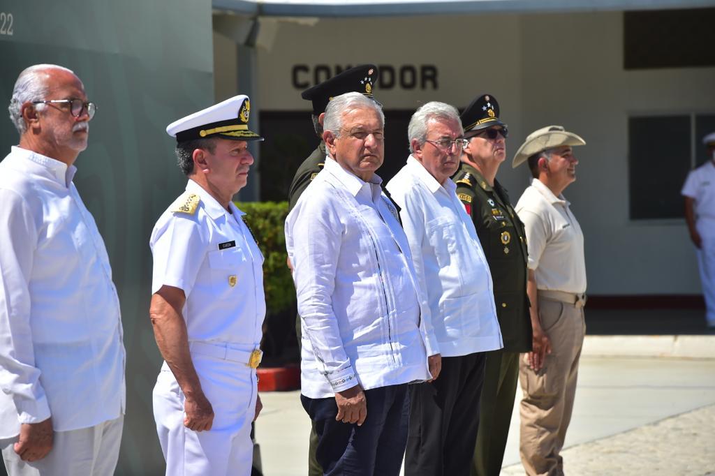 Además estuvieron presentes su esposa Beatriz Gutiérrez Müller; el almirante José Rafael Ojeda Durán, secretario de Marina y alto mando de la Armada de México; el general Luis Cresencio Sandoval, secretario de la Defensa Nacional; Miguel Ángel Navarro Quintero, gobernador de Nayarit; Rubén Rocha Moya, gobernador de Sinaloa; así como de autoridades civiles, militares y navales.