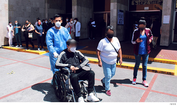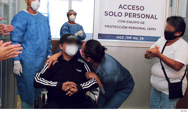 La médico Claudia Trujillo Arévalo, adscrita al Servicio de Urgencias del HGZ/MF, explicó que se le dio tratamiento y permaneció en el Servicio de Urgencias por más de tres semanas. Y “gracias a todo el apoyo del Instituto Mexicano del Seguro Social y al equipo de respuesta COVID que trabaja en esta unidad, el paciente pudo seguir adelante y hoy es un gusto tener la noticia de que está dado de alta a su domicilio”.