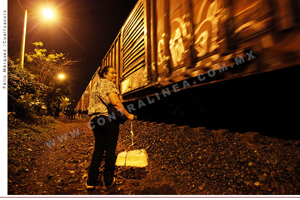 Una imagen de la virgencita de Guadalupe adorna la pared de la cocina donde hierve el arroz. Julia lo revuelve y mira el reloj, una, dos, tres cuenta en voz alta: “Faltan 3 horas para que pase el tren”. Julia forma parte del grupo de mujeres mexicanas campesinas que todos los días preparan, con sus propias manos, comida para luego ponerla en bolsas y arrojarlas a los Guatemaltecos, hondureños, cubanos y salvadoreños que conviven en uno de los corredores migratorios más concurridos del mundo. Sin posibilidad de sombra, con mala alimentación y mal dormidos, muchas veces, los migrantes caen en las vías y son devorados o amputados por las ruedas del tren. Éste es sólo uno de los riesgos de viajar en La Bestia. A lo largo de la ruta, son muchos los peligros con los que se encuentran. El crimen organizado, su mayor enemigo, cuyos negocios son el tráfico de drogas y armas, la extorsión, los secuestros y la trata de personas.