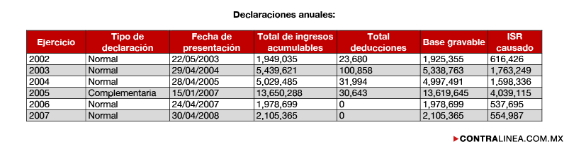 El expediente UIF/SAT/2577/2009 establece haber localizado en el Registro Federal de Contribuyentes con clave VICL680810SG1, fecha de inicio de operaciones 1 de enero de 1993, actividad preponderante “Servicios Técnicos Especializados de Gobiernos Federal y Estatal”, localizándose declaraciones anuales con ingresos acumulables como a continuación se detalla: año 2002, 1 millón 949 mil 35 pesos; 2003, 5 millones 439 mil 621 pesos; 2004, 5 millones 29 mil 485 pesos; 2005, 13 millones 650 mil 288 pesos; 2006, 1 millón 978 mil 699 pesos; 2007, 2 millones 105 mil 365 pesos.