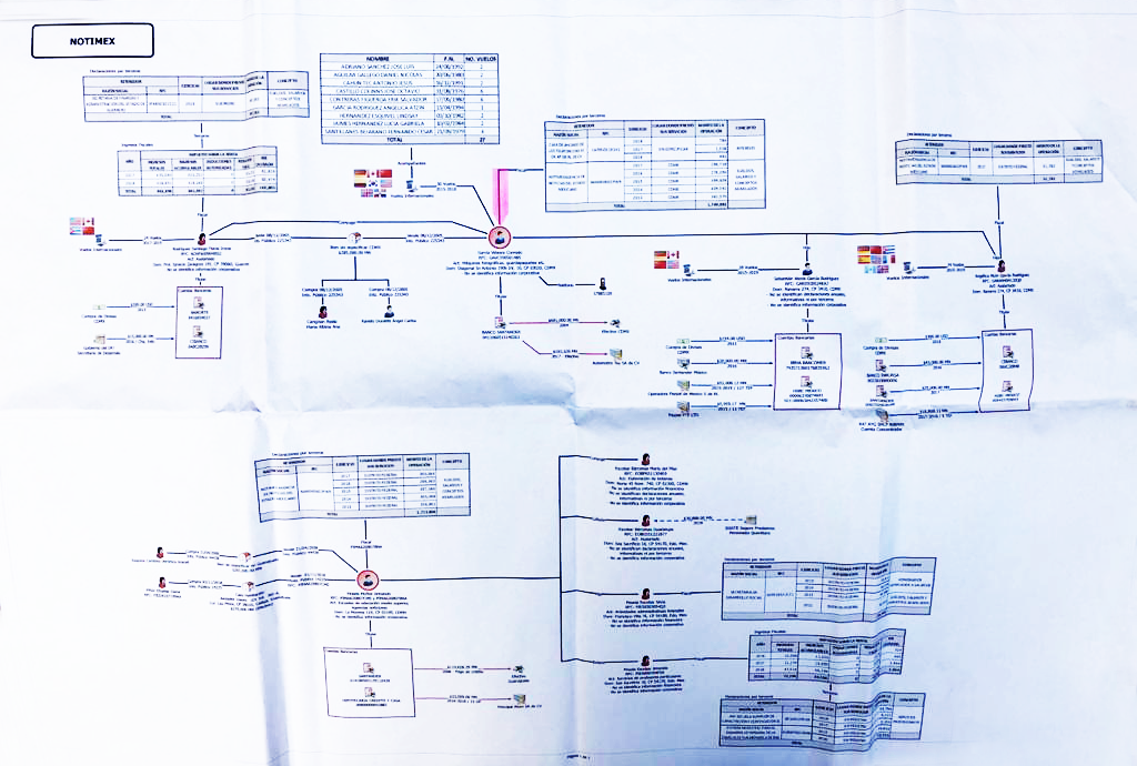 El expediente que incluye una gran infografía –a la que Contralínea tuvo acceso– resume el recorrido del dinero público a través de cuentas bancarias de la Agencia, del Sindicato Único de Trabajadores de Notimex –Sutnotimex, que por años encabezó Conrado García Velasco– y de particulares, incluidas personas morales. De todo ello, la actual administración que encabeza la periodista Sanjuana Martínez ha dado parte a la Fiscalía General de la República, donde ya se preparan los procesos para solicitar varias órdenes de aprehensión y el congelamiento de cuentas bancarias relacionadas al caso.