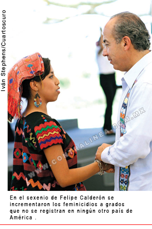 Una investigación de la Secretaría de Gobernación confirma que las muertes violentas de mujeres repuntaron durante el sexenio pasado. Para 2010, la tasa de homicidios dolosos de mujeres superó el promedio global para los países del Continente Americano e implicó un retroceso de 14 años para México. A pesar de lo alarmante de estas cifras, el Estado no cuenta con un registro confiable respecto de los asesinatos de mujeres por razones de género: el 25 por ciento de las entidades aún no tipifican el feminicidio, y los mecanismos institucionales encargados de la protección de las mujeres presentan obstáculos prácticos