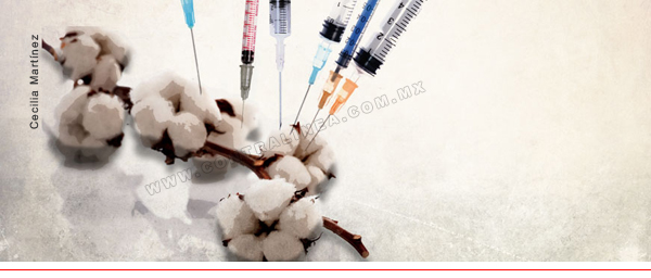 México ha concedido a trasnacionales 359 permisos para la siembra de algodón transgénico. Más de la mitad fueron emitidos durante el gobierno de Felipe Calderón, quien –al frente del Poder Ejecutivo– aprobó las solicitudes para la siembra experimental, piloto y comercial en 2 millones de hectáreas en 10 estados de la República. La superficie aprobada equivale al territorio de países enteros, como El Salvador o Belice. Monsanto y Bayer son las principales beneficiarias. A la primera se le autorizaron, tan sólo para siembra comercial, 350 mil hectáreas. Otras 13 solicitudes de estas dos trasnacionales se encuentran en etapa de análisis y el gobierno de Peña Nieto deberá decidir si las aprueba o las rechaza. México es centro de origen y diversidad genética del algodón, sin embargo hasta ahora no se ha emitido medida alguna para proteger a las especies nativas de la contaminación transgénica