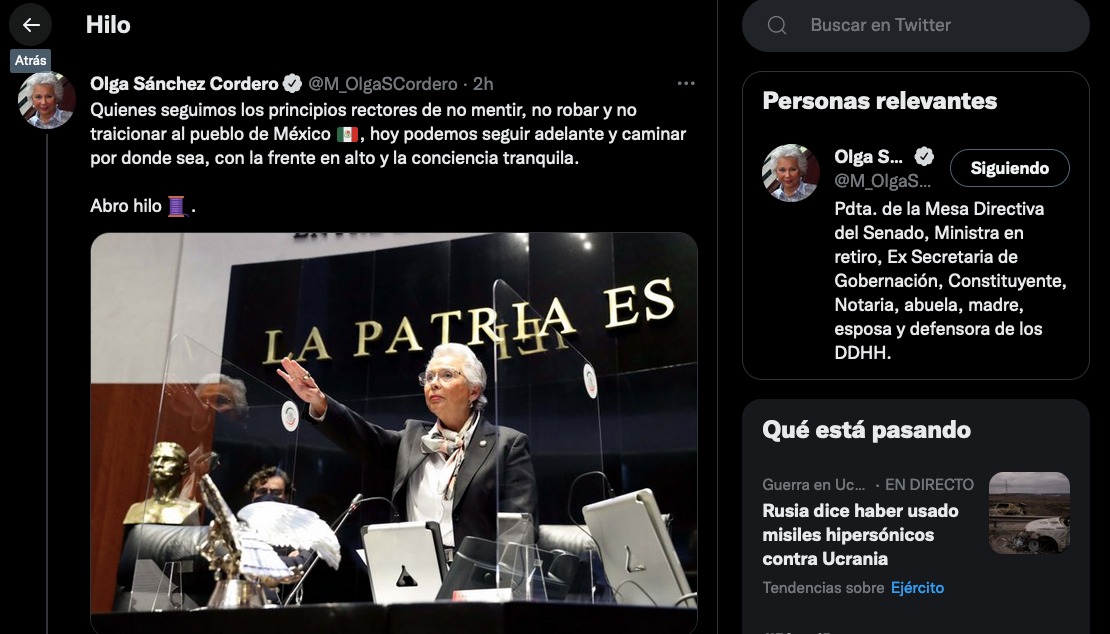 Esta tarde la exsecretaria de Gobernación, Olga Sánchez Cordero, respondió al exconsejero jurídico de la Presidencia de la República, Julio…