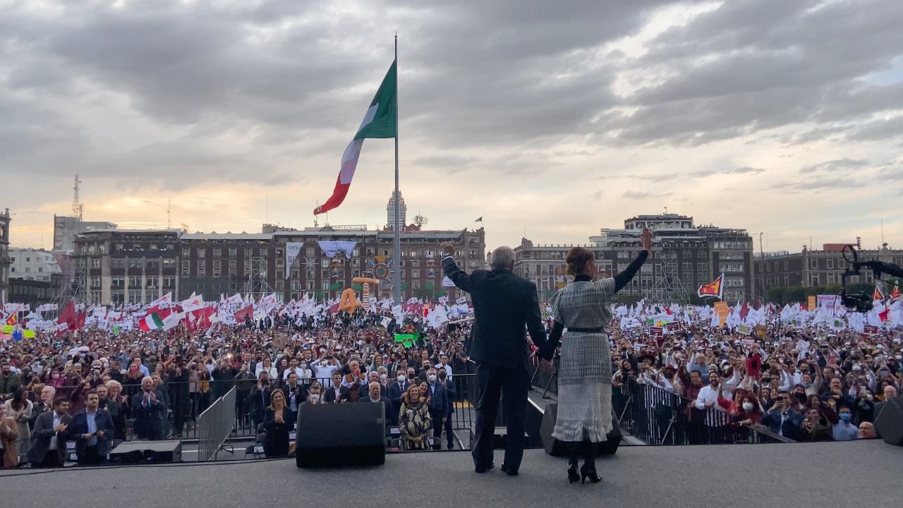 En un Zócalo a reventar, con el júbilo de centenas de personas que coreaban “es un honor estar con Obrador” –como no se veía en